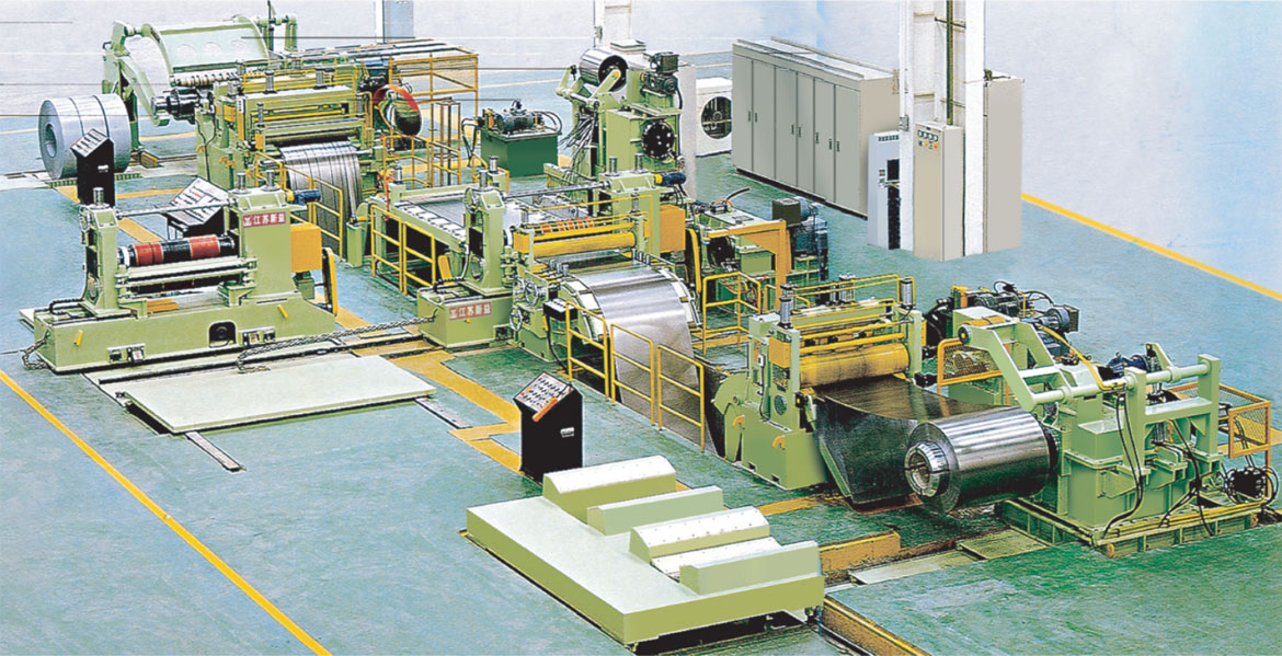 該生產線是冷軋金屬板開卷縱剪收卷專用設備,正常配置上料小車、開卷、送料、圓盤刀片縱剪機、阻尼預分料、收卷機組、卸料小車、控制系統等單元機器外,在送料的后面可選粗校機構;還可根據客戶需要配置一用一備兩臺縱剪機組。一臺在線工作時,另一臺進行更換刀片隔圈、隔套,維護修整,極大提高生產線的工作效率、增加產量降低成本。